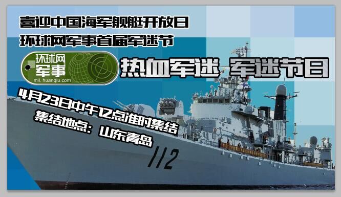 环球网:喜迎海军舰艇开放日  环球网军事热血军迷召集令 看点【环球网军事首届军迷节,环球网军事军迷节,北海军港,青岛海军,舰艇开放日】【环球军事报道】4月23日是一年一度的海军节,中国海军将分别在青岛、大连、上海、舟山、厦门、湛江等地组织舰艇开放活动。