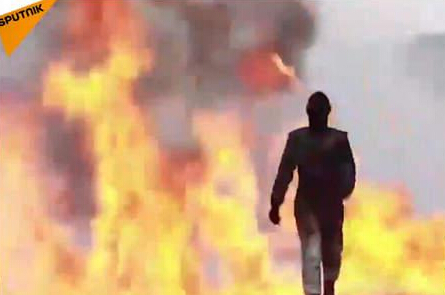 金发女郎穿着防护衣走入地雷阵,经受多次爆炸仍然毫发无损。俄副总理罗戈津形容,士兵穿上防护衣后“比未来战士更强悍”。