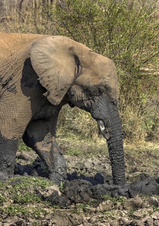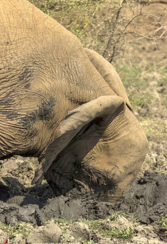 南非大象头钻泥土 模仿“鸵鸟”避暑